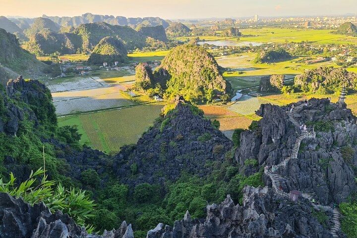All in Ninh Binh, where is emerging as the most famous in the North of Vietnam. You will be overwhelmed by the size of the largest pagoda in Vietnam at Bai Dinh, the breathtaking view of the heritage site of UNESCO in Trang An and Hiking up 500 steps see so picturesque landscape from the peak of Mua mount.