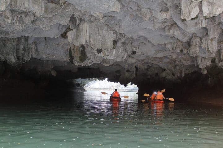 Calypso Cruises are distinguished by its luxurious white color in the sea, in the sky, in the clouds. During 2 days 1 night Lan Ha Bay tour , You will be greeted warmly by the captain and the sailors on board. Just had lunch, just released soul into beautiful nature with thousands of green canals and many islands. Activities such as: kayak, rowing boat explore the fishing village, learn cooking on the train, sunset, night squid, welcome to dawn with tai chi exercises, visit the cave will bring you the unforgettable experience.