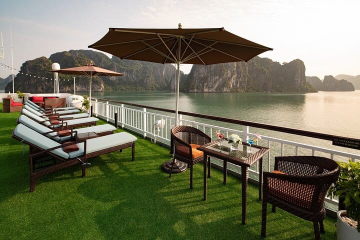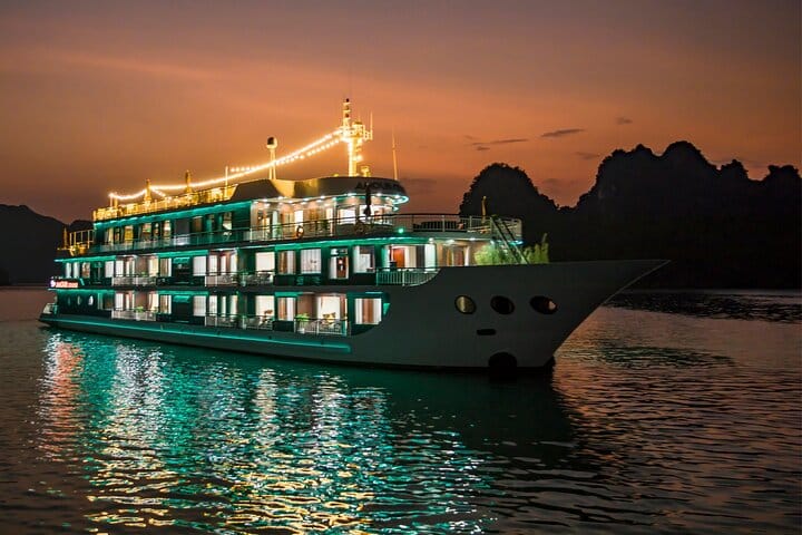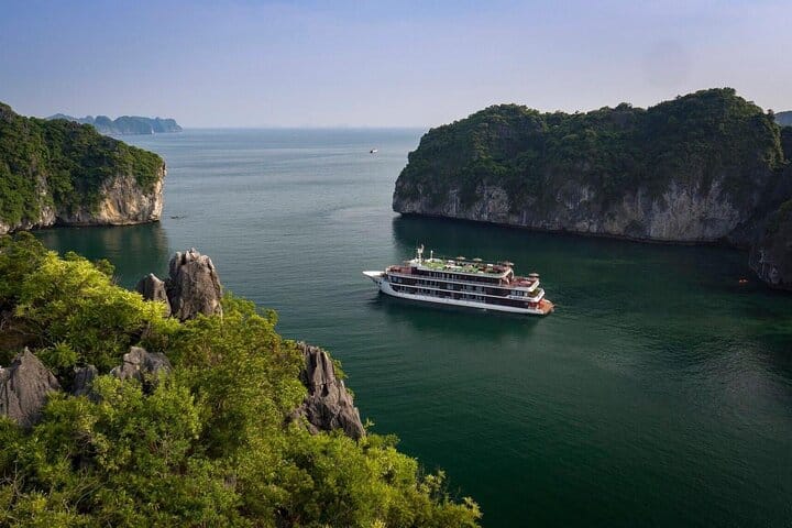 Beyond the reach of any crowd, Dora Cruise 3 days 2 nights escorts vacationers to the pristine and enchanting attractions of Nature as well as the peaceful village. Some highlights like the Tai Chi practice, Vietnamese cooking class, sunset party, squid fishing, etc., and especially the luxury rooms boost the relaxation aboard so much.The time you’re standing in front of Van Boi Beach, Dark & Light Cave, or Viet Hai Village, you know this is exactly the 3-day voyage that you’ve been searching.