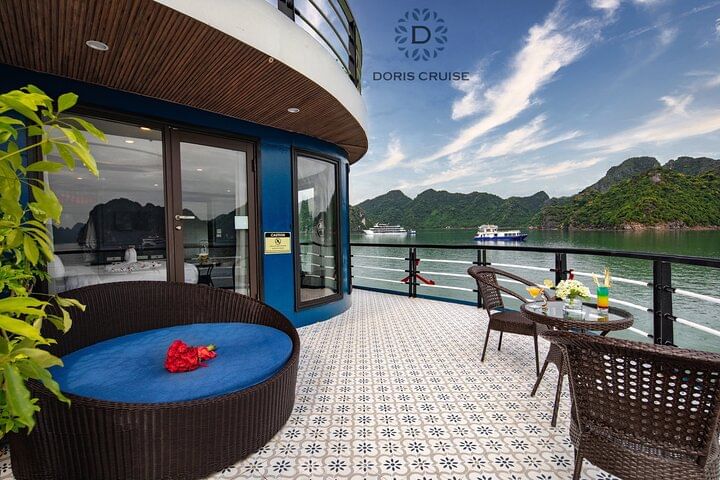 Doris Cruise is newly 5 star cruise. It is the first cruise with available swimming pool. All cabins have available private balcony with ocean view. The itineraries are exclusive and different to all cruises with unique and original Lan Ha Bay Doris Cruise - A truly experiencing Lan Ha Bay, Halong Bay. Passengers have new different and marvelous destinations at Lan Ha Bay and Ha Long Bay, swimming and kayaking at Ba Trai Dao Islet, heading to Dark & Bright Cave (Hang Sang & Toi), Con Vit islet (Duck Islet), Thumb islet and Gia Luan Harbor Let's discover itineraries and beautiful blue ocean in yellow sunshine