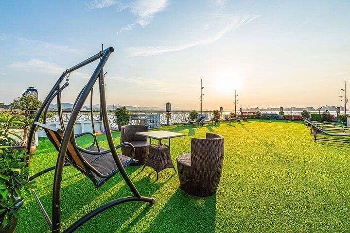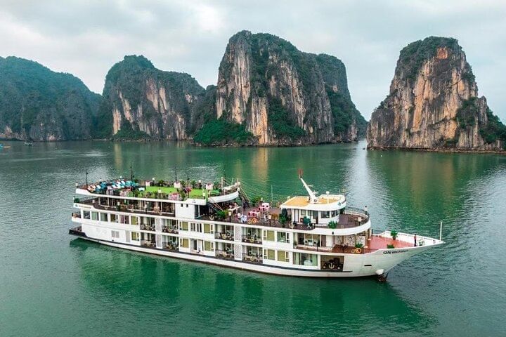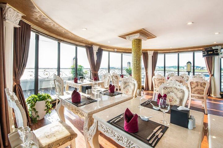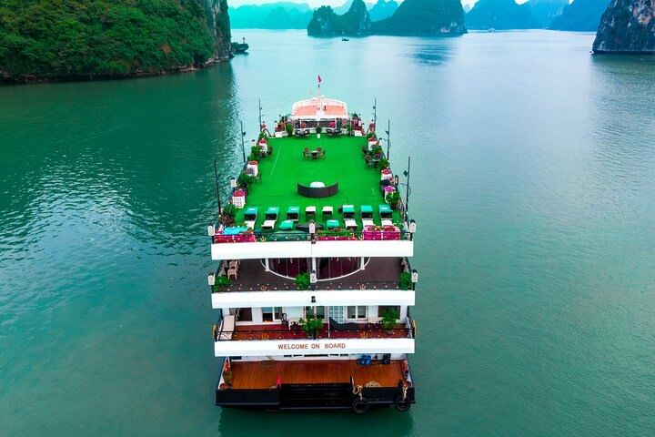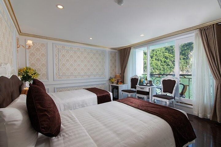 Halong Aquamarine Cruise is designed in royal style combining classic elegance and nobility with deep wood furniture. Consisted of 22 cabins with restaurants, spa and bar, and each cabin is sophisticatedly designed, fully equipped with high-end furniture and has a separate balcony for sightseeing and enjoying the wonderful natural scenery of Ha Long Bay.