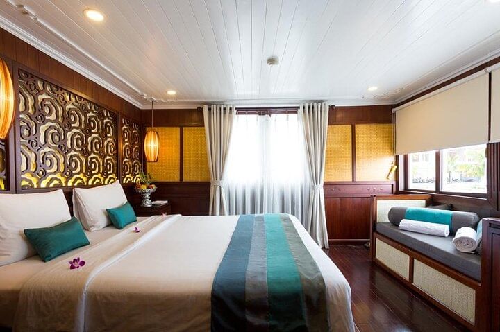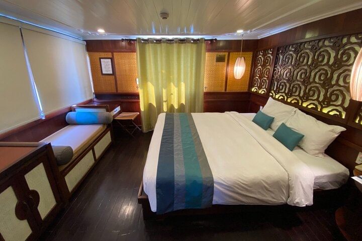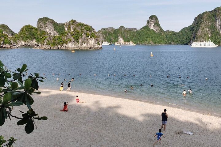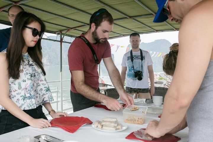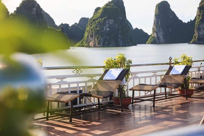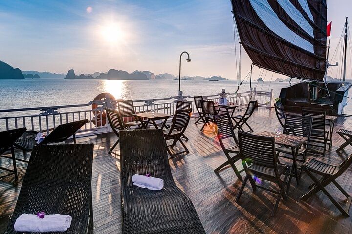 Enjoy a serene overnight cruise through the picturesque Halong Bay aboard a traditional Vietnamese boat, offering a more authentic experience than modern ships. Escape the bustling city of Hanoi and immerse yourself in the culture and history of the region while exploring the bay at a relaxed pace. Swim, kayak, and visit the famous Sung Sot Cave and Ti Top Island. Join a hands-on cooking class and savor traditional Vietnamese seafood as you take in the breathtaking scenery of this UNESCO World Heritage site.