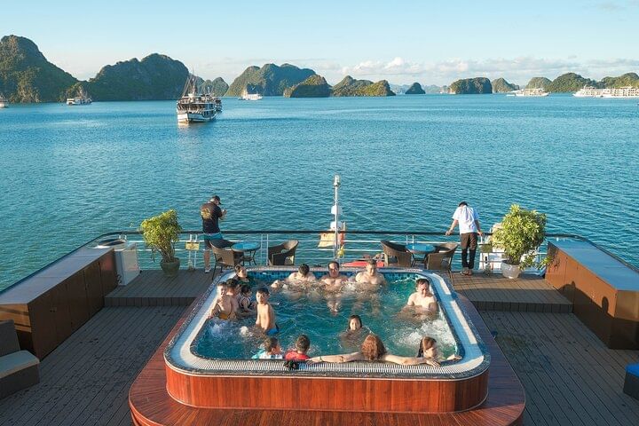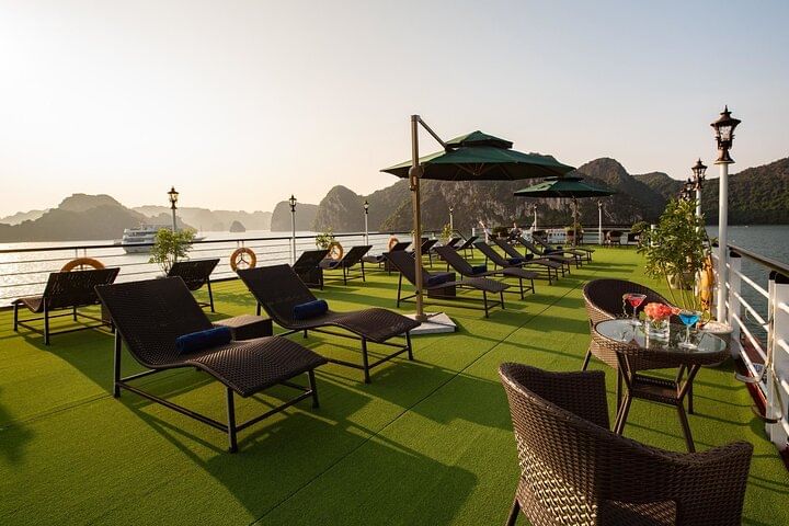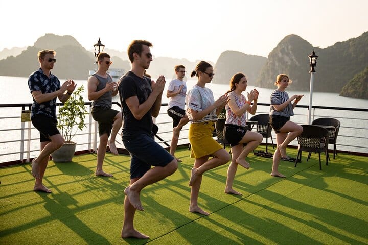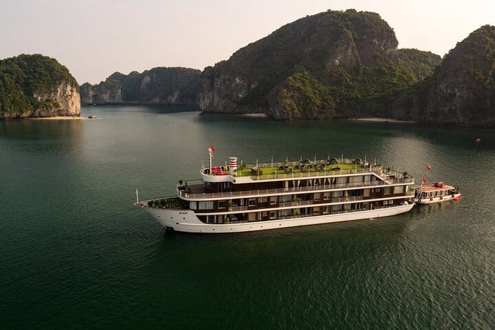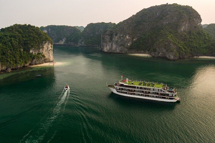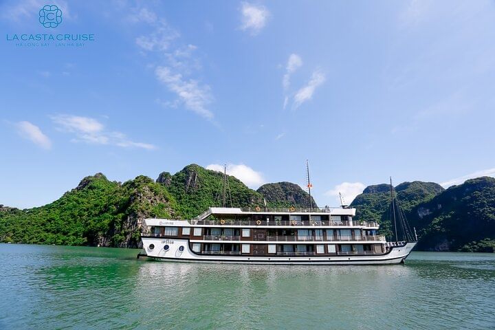 Beyond the reach of any crowd, La Casta Cruise 3 days 2 nights escorts vacationers to the pristine and enchanting attractions of Nature as well as the peaceful village. Some highlights like the Tai Chi practice, Vietnamese cooking class, sunset party, squid fishing, etc., and especially the luxury rooms boost the relaxation aboard so much.The time you’re standing in front of Van Boi Beach, Dark & Light Cave, or Viet Hai Village, you know this is exactly the 3-day voyage that you’ve been searching.