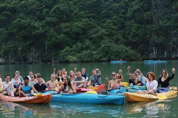 Oasis Party Cruise is the newest edition to our fleet and is one of the largest boats in Halong Bay. We offer an amazing experience for young travellers combining the beautiful tour of Halong Bay with activities including kayaking, water trampoline, swimming, boat jumping and much more with young travellers looking to enjoy the top 7 natural wonders of the world. An awesome party and activity experience which will be without doubt a very special memory of your travels through Vietnam. We truly believe we have something for everyone so if you’re looking for beautiful scenery, adventure, and the chance to make some new friends and lots of fun then our Oasis Bay Party Cruise of Halong Bay is sure to be one of the highlights of your Vietnam trip!