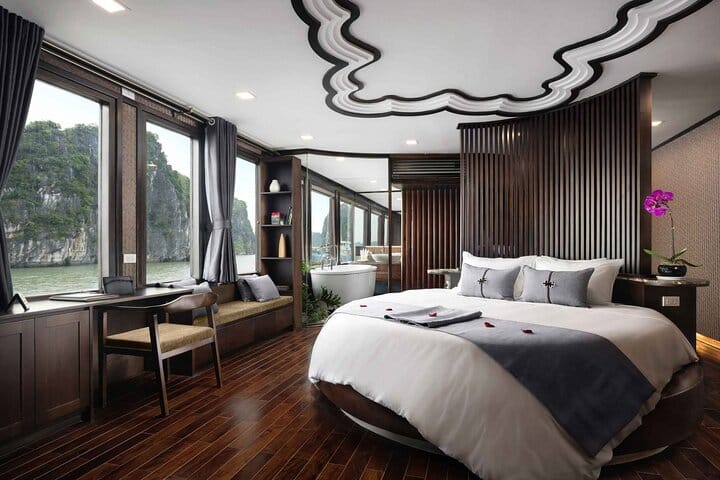 As the first 5-star quality cruise to explore both Halong Bay and Lan Ha Bay, Orchid Cruises remains a timeless inspiration thanks to its classic Indochine architecture combined with all-wooden interiors. Orchid Cruises Group with from 14 cabins to 20 cabins private balconies overlooking the bays and an outdoor jacuzzi that embraces the magnificent natural scenery, a restaurant with a variety of Asian-European flavors, Orchid Cruises promises to bring the upgraded and most memorable experience to all our clients.