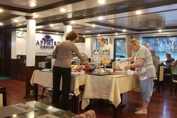 Sapphire Cruise will make you enjoy high-quality service with 4 star standards cruise on the most beautiful landscapes in Vietnam. With the beauty of a huge vivid water picture of limestone islands on the Lan Ha Bay, along with activities to explore the bay such as kayaking discovering the world heritage beauty in Lan Ha Bay, Halong Bay. All will make you have a memorable about 2 days 1 night tour on Sapphire Cruise
