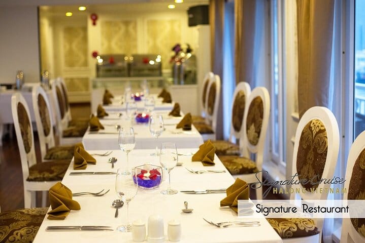 Signature Cruises is so proud to be the leading tour operator who is specializing in Bai Tu Long Bay. We wish to provide our customers the best culinary and unique route cruising experiences. Signature Cruises System with 2 boats in Bai Tu Long Bay: Firstly, Signature Cruise - Bai Tu Long Bay 2 days 1 night (12 cabins). Secondly, Signature Royal Cruise- Bai Tu Long Bay 2 days 1 night (16 cabins). Two of them will bring to visitors the most exciting experiences in Bai Tu Long Bay with all popular attractions such as: Vung Vieng Fishing Floating Village, Thien Canh Son Cave, Kayaking, Cooking demonstration, Sunset party, etc. We offer for customers on budget- friendly cruise - the unique cruising route, we promise!