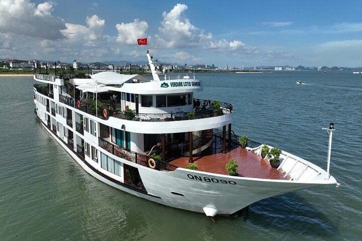 Experience a luxurious escape aboard the Verdure Grandeur Cruise, a 5-star overnight journey through the breathtaking beauty of Halong Bay. This 2-day, 1-night cruise takes you to iconic destinations such as the Surprising (Sung Sot) Cave, known for its impressive limestone formations, and Ti Top Island, where you can hike to the summit for panoramic views or relax on the sandy beach. Enjoy exciting activities like kayaking through emerald waters, savoring fine dining on deck, and watching the sunset over the bay. The Verdure Grandeur Cruise promises an unforgettable blend of relaxation, adventure, and natural wonders.